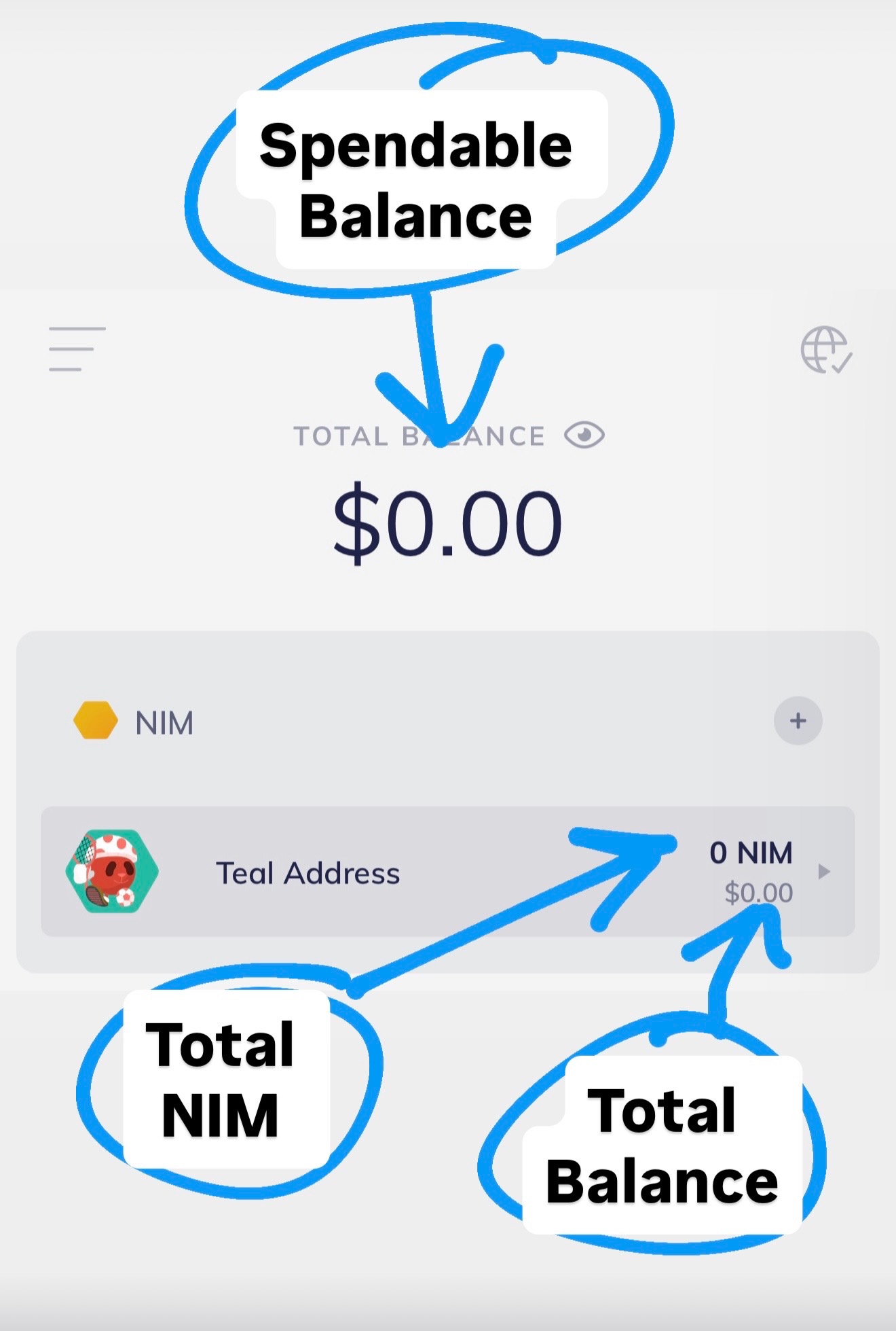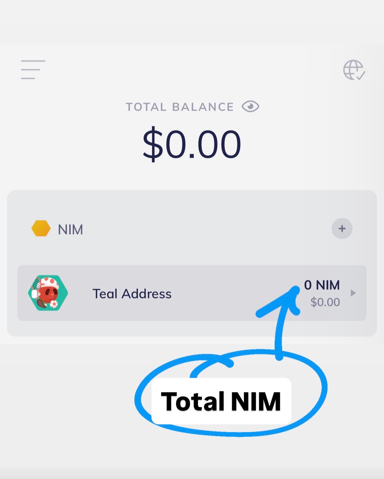 - The Account Card: A smaller fiat value next to the specific Address/NIM amount.